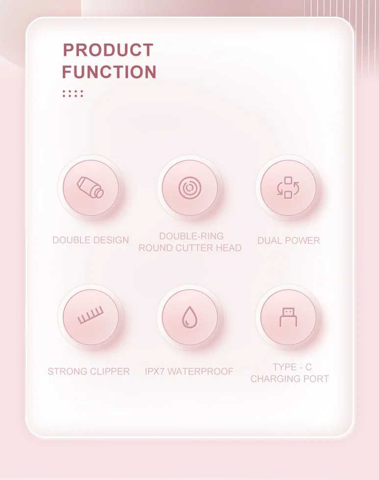 R-Shaped Blade: The R-shaped rounded blade is designed to prevent cuts, ensuring safe use on sensitive areas.